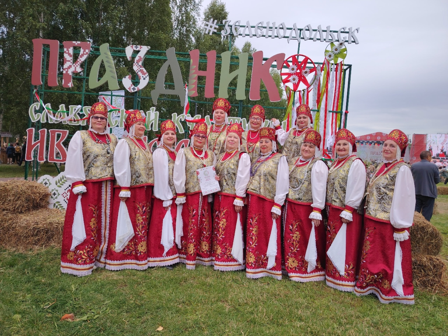 У коллектива имеются 4 комплекта костюмов. Последний комплект костюмов в количестве 16шт был пошит весной 2026 г. Также пошиты 6 комплектов костюмов для татарского ансамбля. Первые три комплекта сшиты очень давно, но они постоянно ремонтируются и дополняются новыми аксессуарами. Недавно были пошиты красивые жилетки золотистого цвета участницей женского хора, Золотаревой Ниной Николаевной, супругой Руководителя нашего хора и участницей этого коллектива уже много лет.