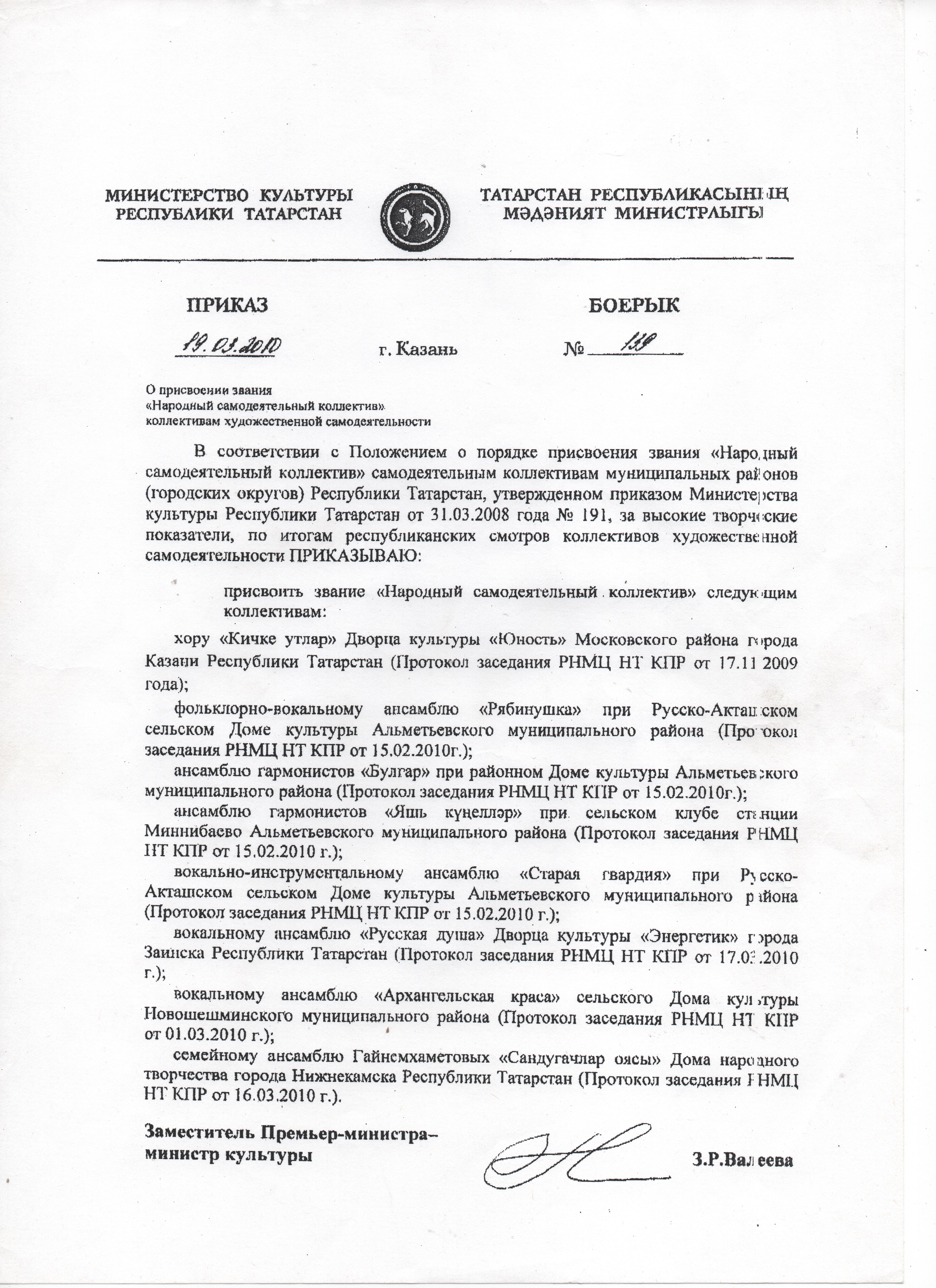 В 2010 году ансамбль «Рябинушка» получил звание «народный самодеятельный коллектив»