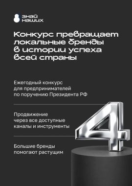 Стартовал четвертый сезон конкурса #ЗнайНаших для растущих российских брендов. Участвовать в нем могут малые и средние предприятия по различным направлениям. Заявки на конкурс принимаются до 1 июня 2026 года на знайнаших.аси.рф.