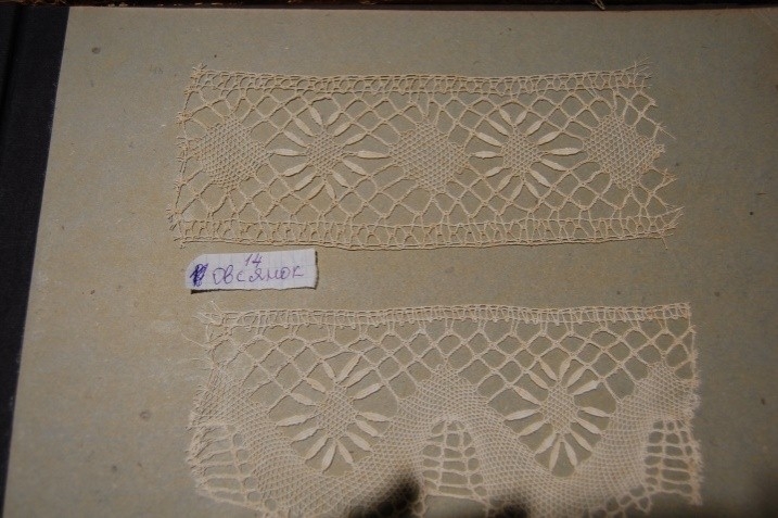 «В Рыбной слободе плели из льна одноцветное парное и численное (без предварительного рисунка) кружево самого простого рисунка… Своего изобретения не возникло, узоры были завезены сюда в разное время и отовсюду. Мастерицы не заботились о сохранении сколков в порядке, а возможно, и не умели делать их, т.к. велики искажения».