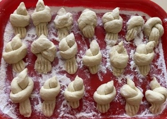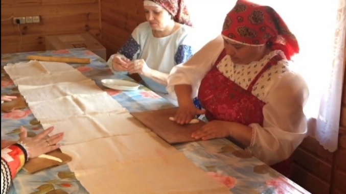 Ранним утром женщины села Мамыково собираются и приступают печь жаворатушек. Особенность «жаворатушек» заключается в простоте состава (так как праздник выпадает на Великий пост) и специфической технике лепки. Форму птицы лепят без специальных инструментов, только руками. Необходимые ингредиенты: мука (2 кг), дрожжи (50 г), растительное масло (250 гр), сахар 1 стакан, вода (0,5л), соль по вкусу, изюм по необходимости. Чтобы путь возвращающихся птиц был легким, в центре стола расстилают белое полотенце. Работу начинают, заговаривая слова: