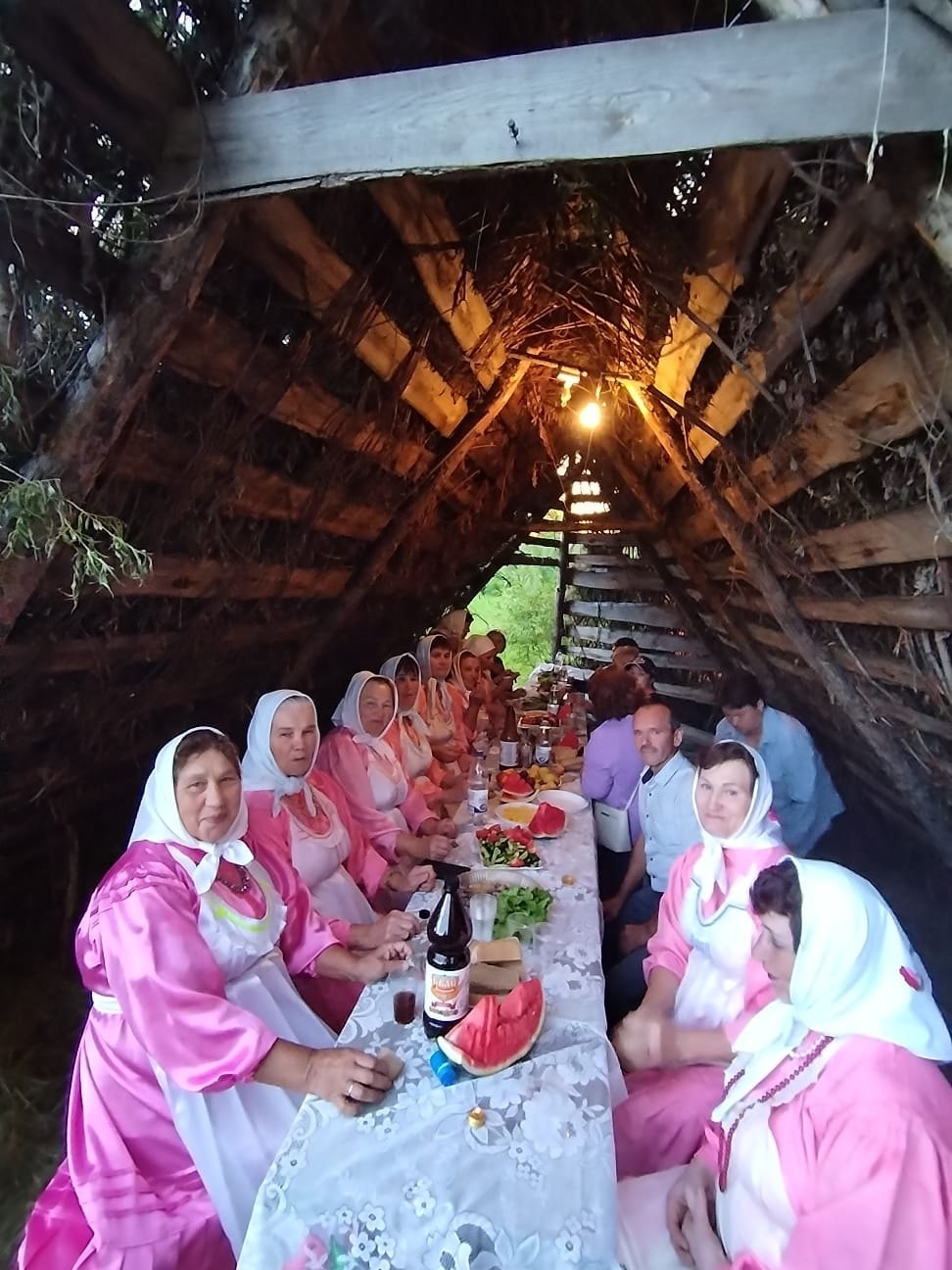 Во время приготовления в большом котле обрядовой каши (çăкăр) и мяса участники праздника (как гости, так и население села) водили хороводы (ташă) и забавлялись разными старинными играми, пели песни и танцевали. По команде старейшин увеселительные мероприятия прекращались, и все рассаживались в круг. Старейшины, произнеся молитвенные слова, начинали раздачу мяса и каши всем участникам праздника. После этого участники праздника расходились, разбившись на группы близких и родственников, и собирались вместе, чтобы разделить трапезу, наслаждаясь вкусной кашей и мясом, выражая надежду, что боги услышали их молитвы и благословили посевы и скот.