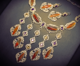 Ювелирные украшения и гарнитуры (изделия народных художественных промыслов): гарнитуры, кольца, колье, серьги, браслеты, сувениры.