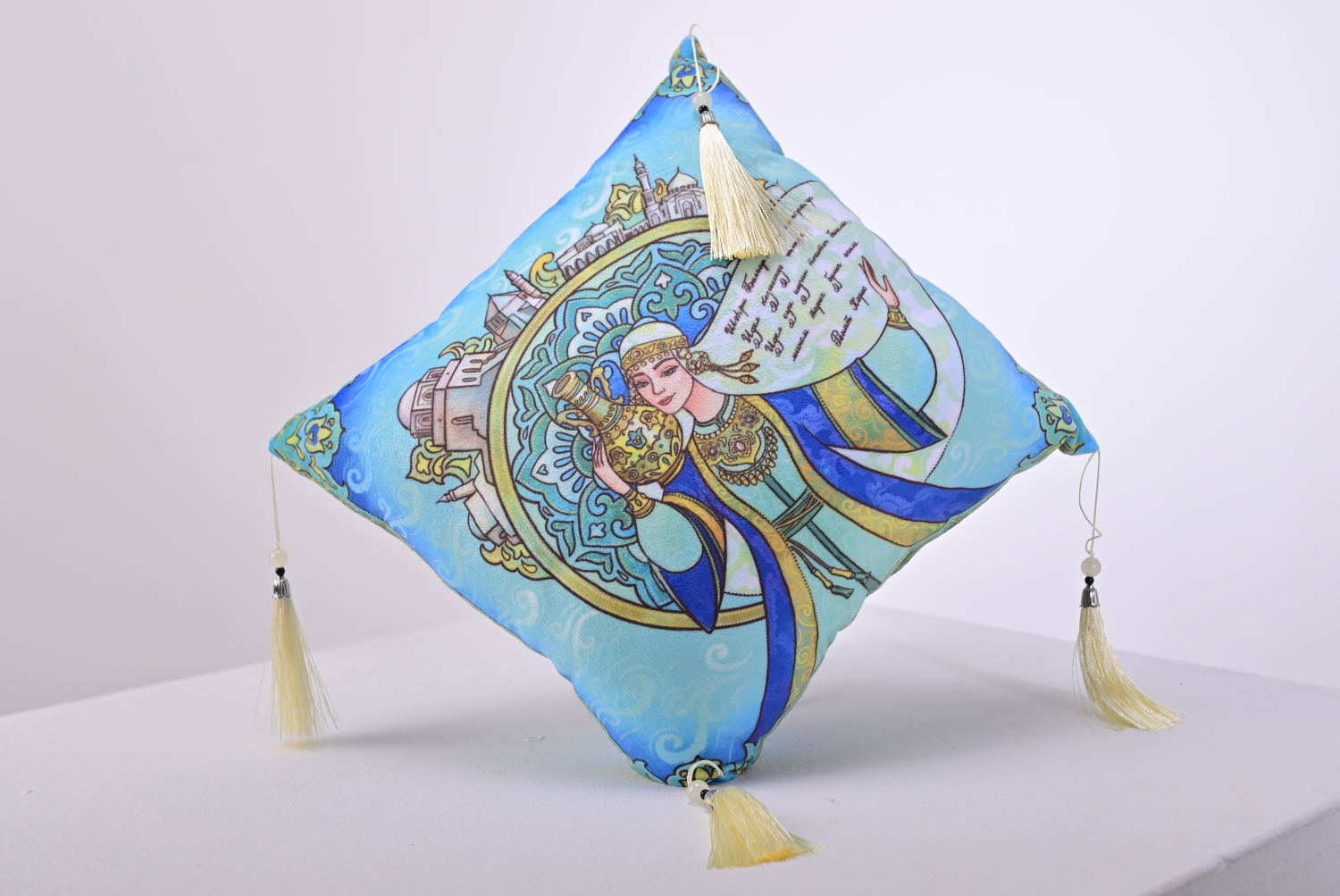 1.Национальные шелковые платки/скатерти/подушки/фартуки/шарфы/мужские кашне с демонстрацией татарского орнамента, символами современного Татарстана совместно с художественными мотивами и выдержками из стихотворений ярчайших представителей поэзии татарского народа: Габдуллы Тукая - «Туган тел» - на трех языках: татарском, русском и английском;