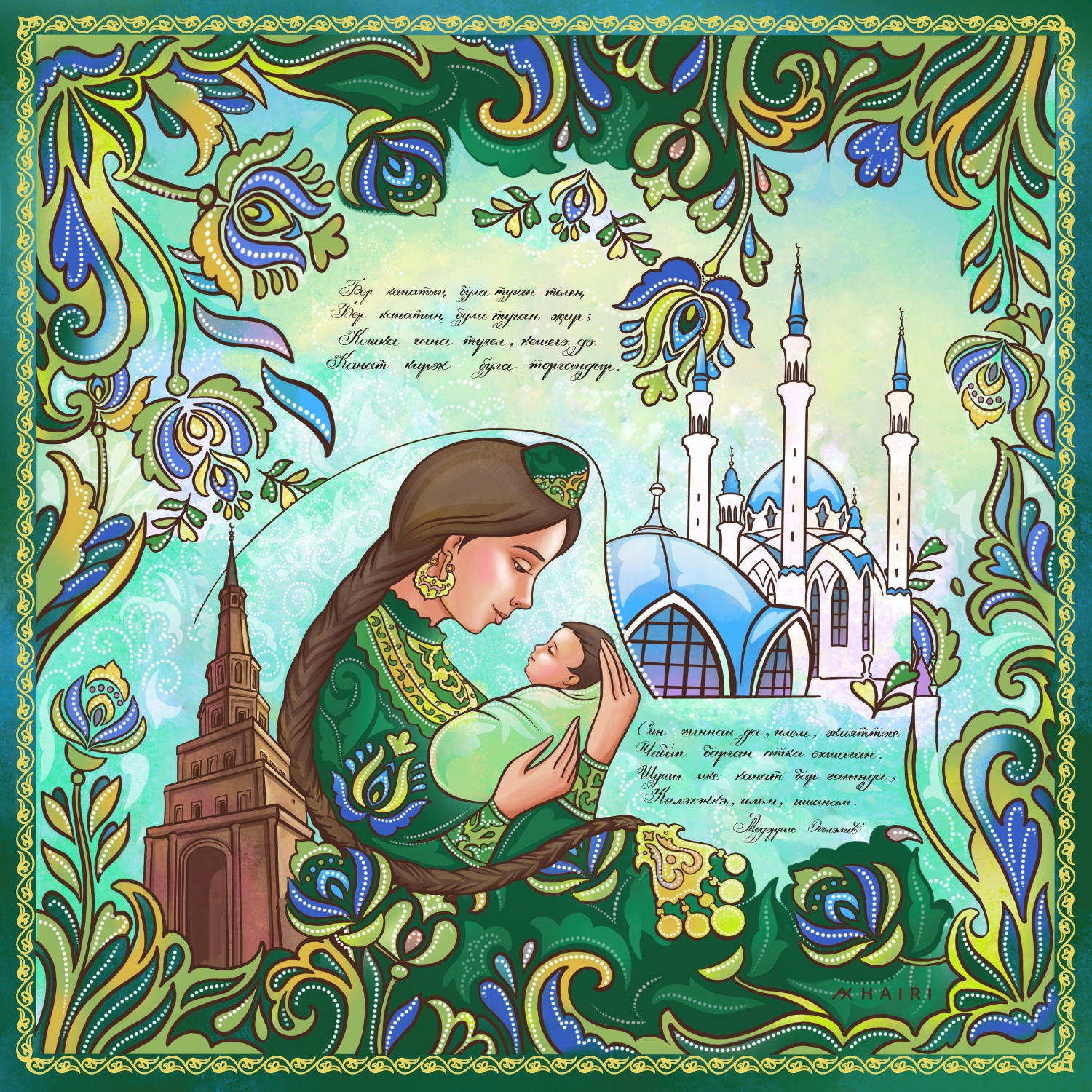 - М. Аглямова - «Бер канатың була туган телең» (значение Родины, матери, родного языка, передачи знания детям и последующему поколению);